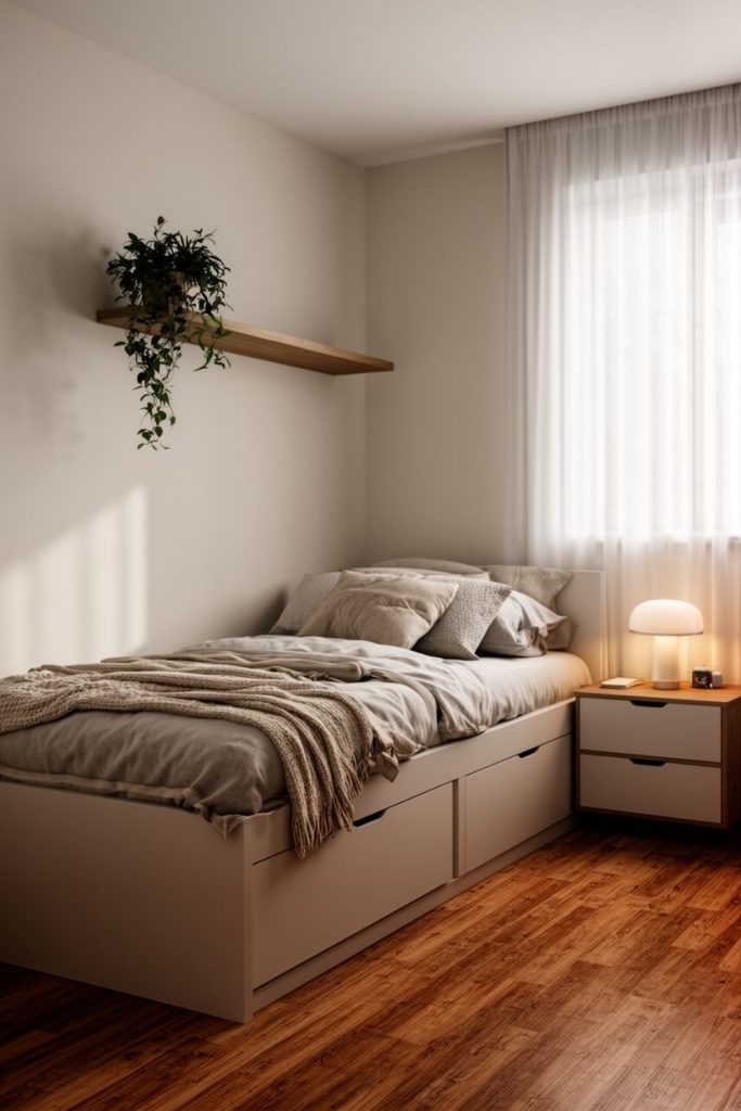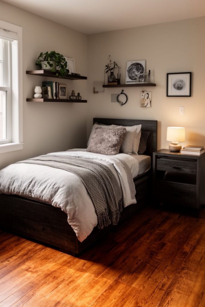 Minimalist furniture like floating shelves, compact beds, or foldable desks maximizes space while maintaining simplicity.