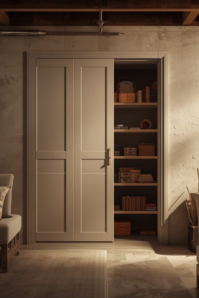 This works well in small basements where visual clutter can make the space feel crowded. By removing visible door frames and handles, the area looks more open.
