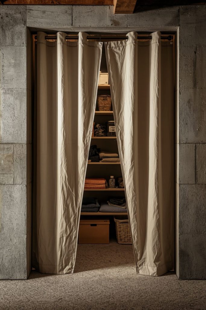 Curtains offer a simple way to cover storage areas without installing doors. They are easy to set up and can be changed whenever needed.