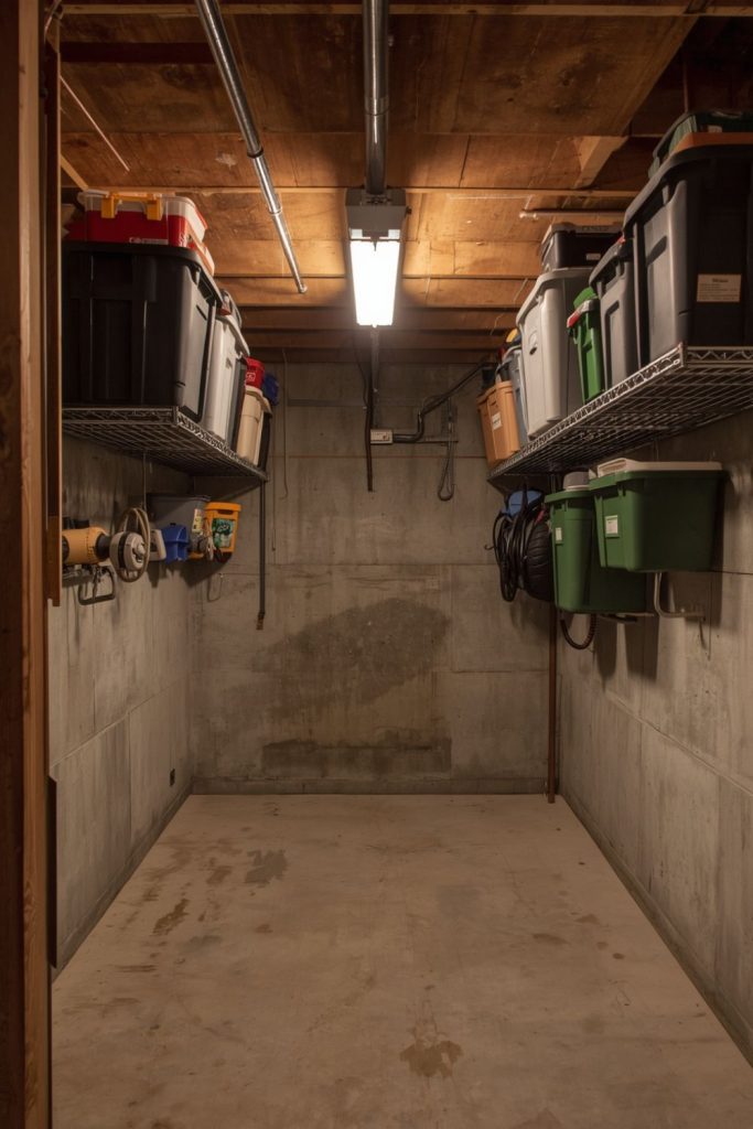 Using these gaps effectively reduces clutter in other areas. Instead of spreading items across the basement, they are contained within these compact zones.