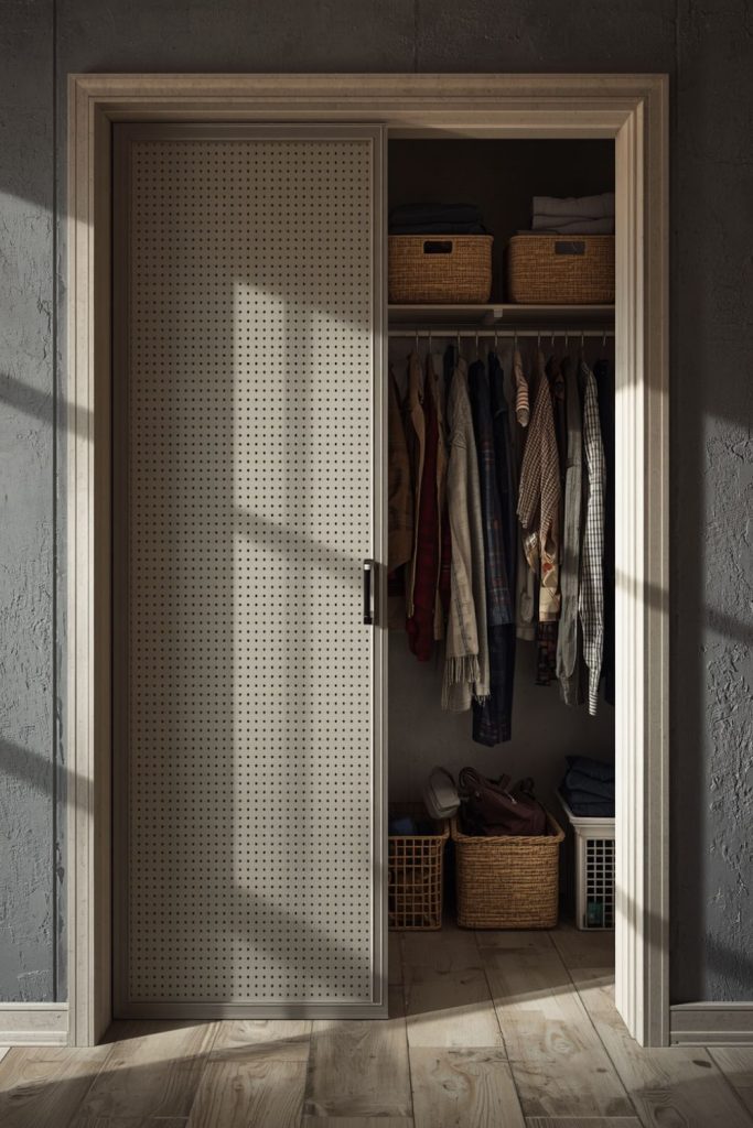 Pegboards are often associated with garages, but they work just as well in basement closets. When combined with sliding panels, they become even more versatile. Instead of fixed storage, you get a system that can shift as needed.