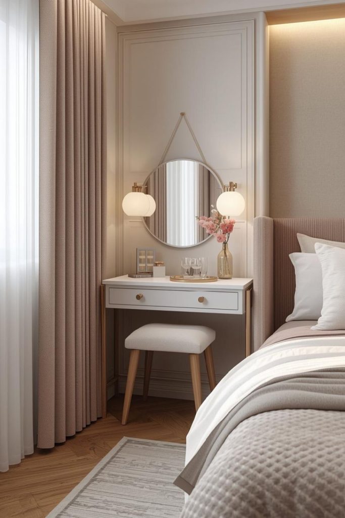 Small bedroom ideas for women creating a chic vanity corner in limited space