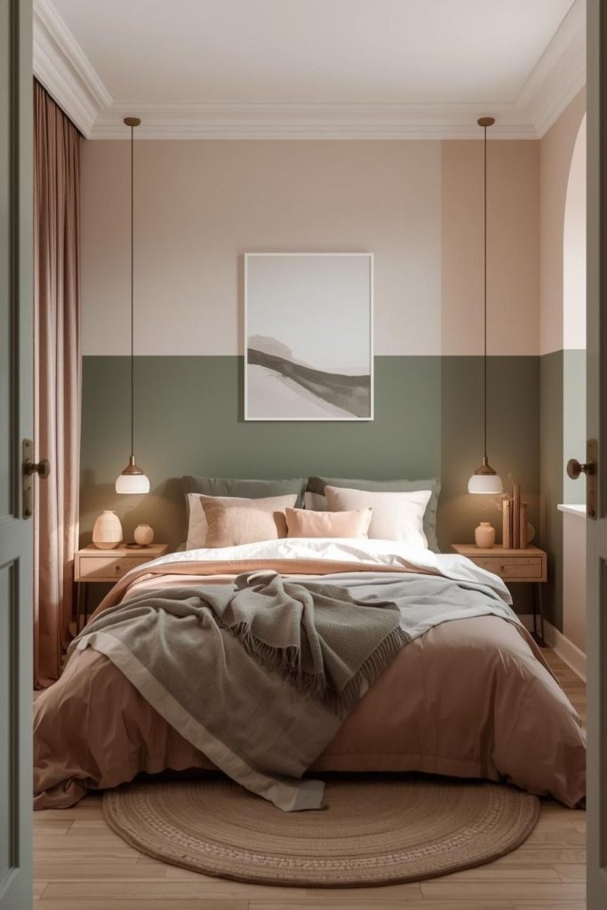 Color choice plays a huge role in how a small bedroom feels the moment you walk in. Small bedroom ideas for women often lean toward palettes that feel calm but still expressive. Soft neutrals like warm white, beige, and light gray form a strong base because they reflect light and make the room appear more open. To keep the space from feeling flat, layer in feminine tones such as dusty pink, muted mauve, soft sage, or pale lavender.