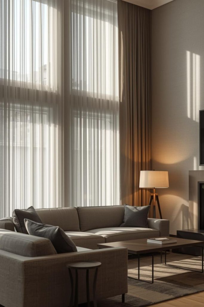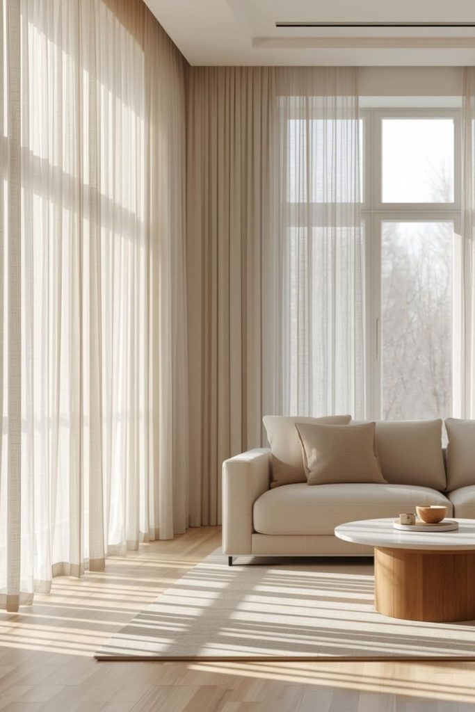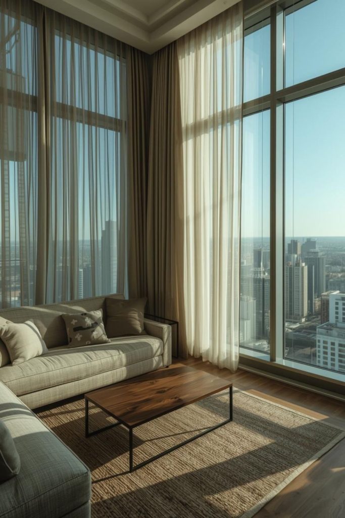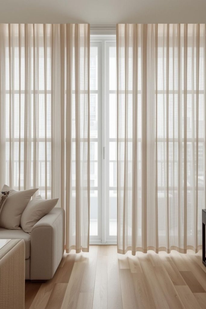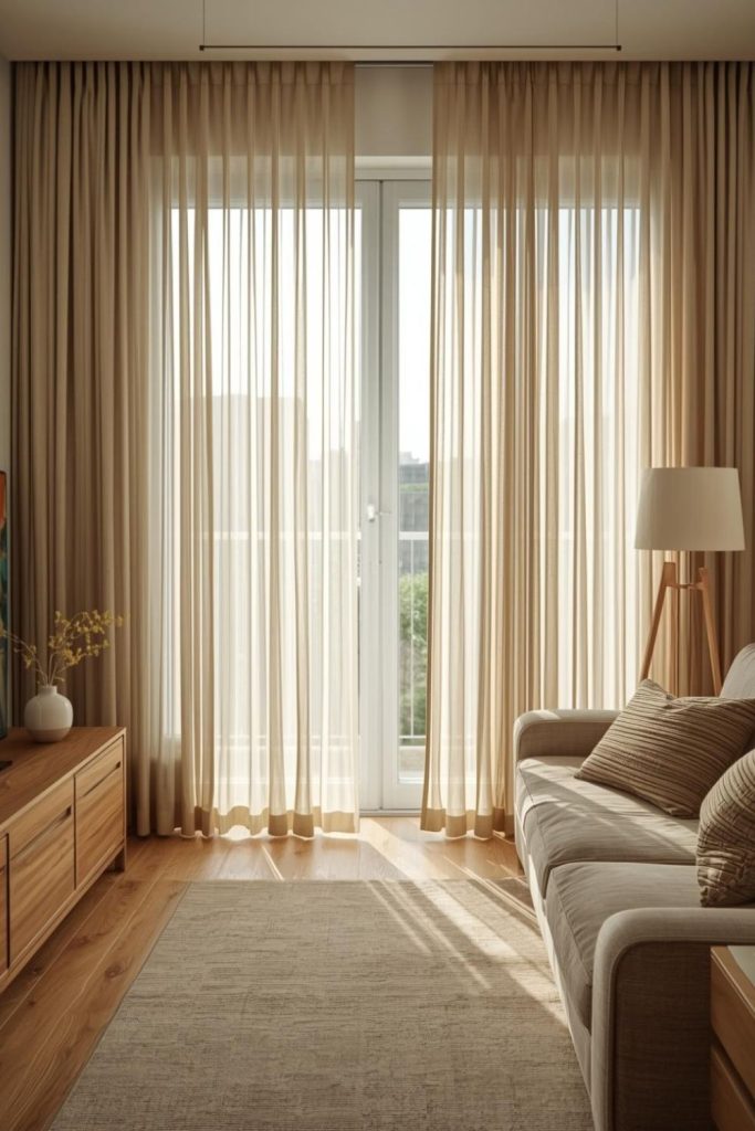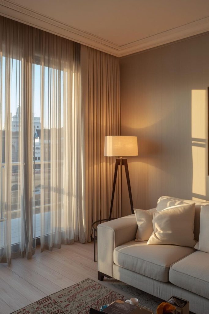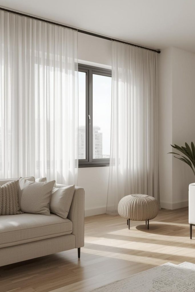 Urban apartments often deal with space constraints, close neighbors, and limited natural light. Sheer curtains living room styles respond well to these conditions by visually expanding the room while staying practical.