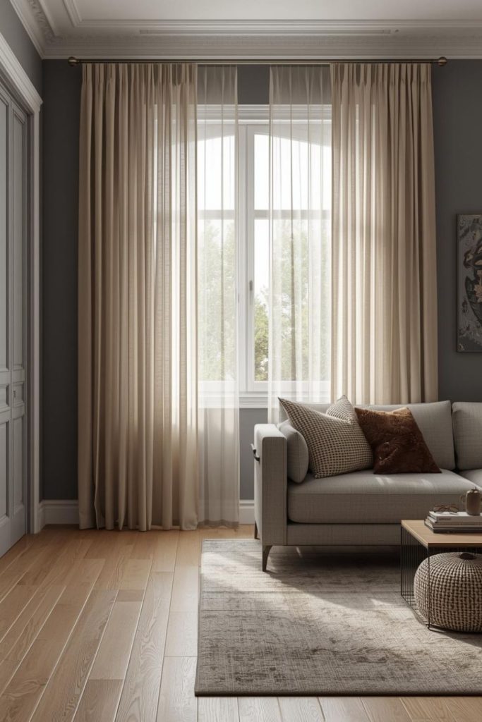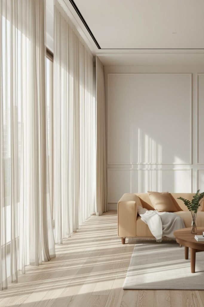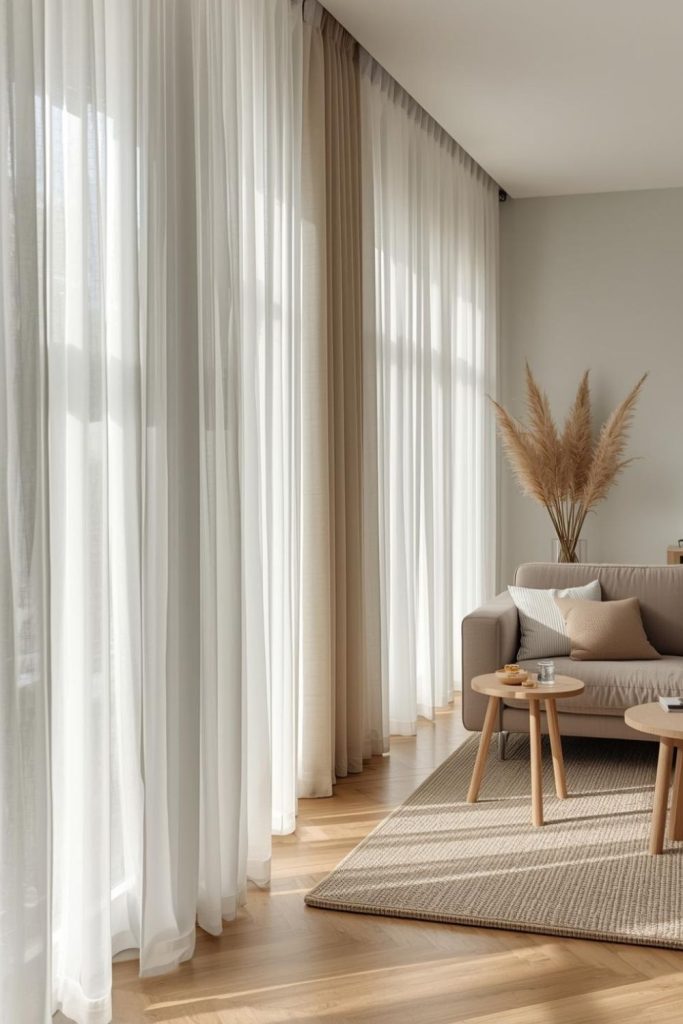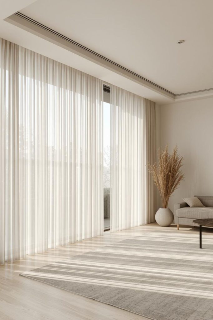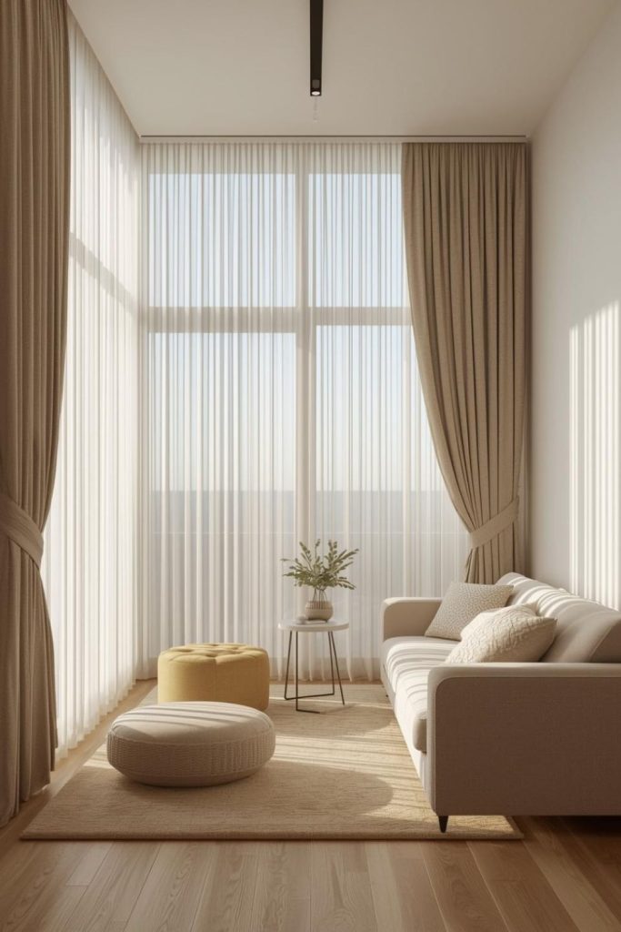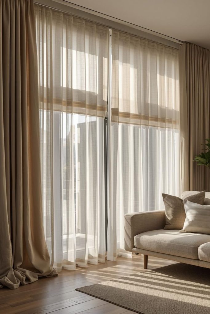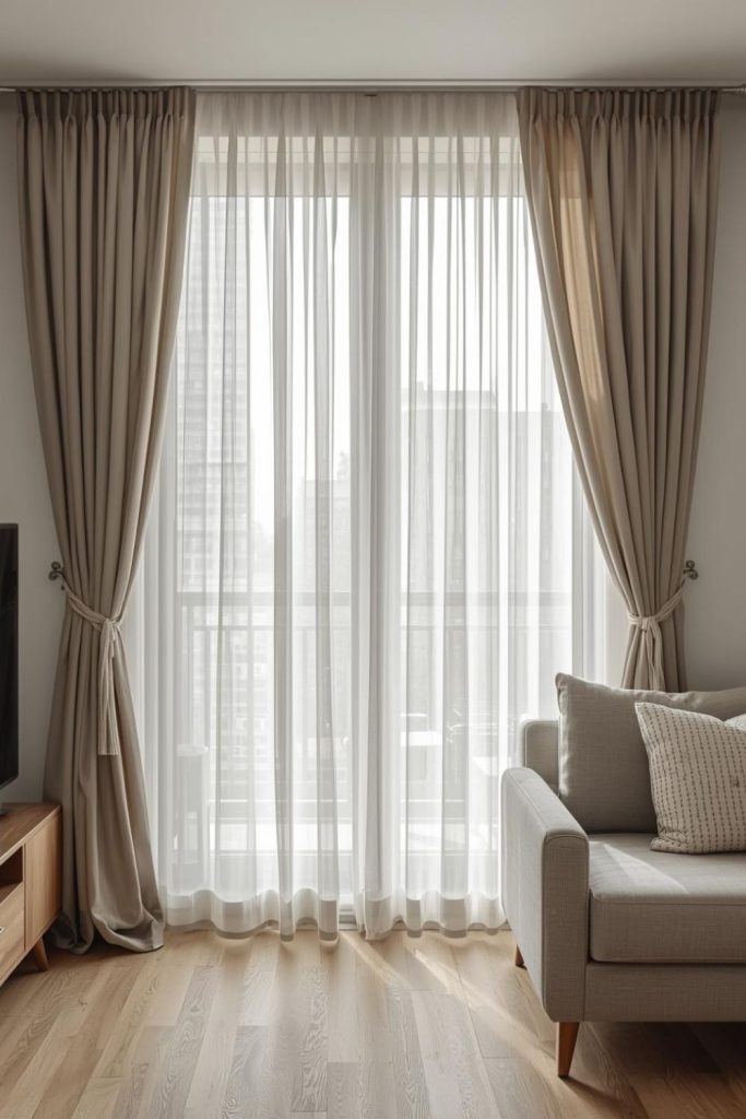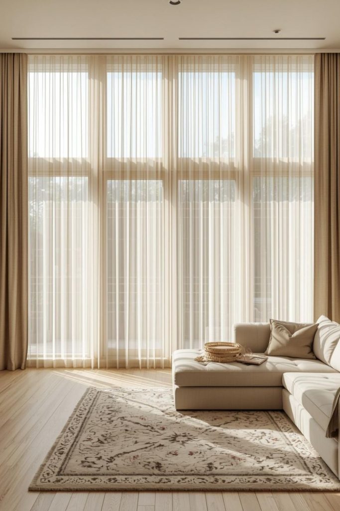 Urban apartments often deal with space constraints, close neighbors, and limited natural light. Sheer curtains living room styles respond well to these conditions by visually expanding the room while staying practical.
