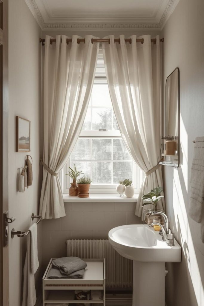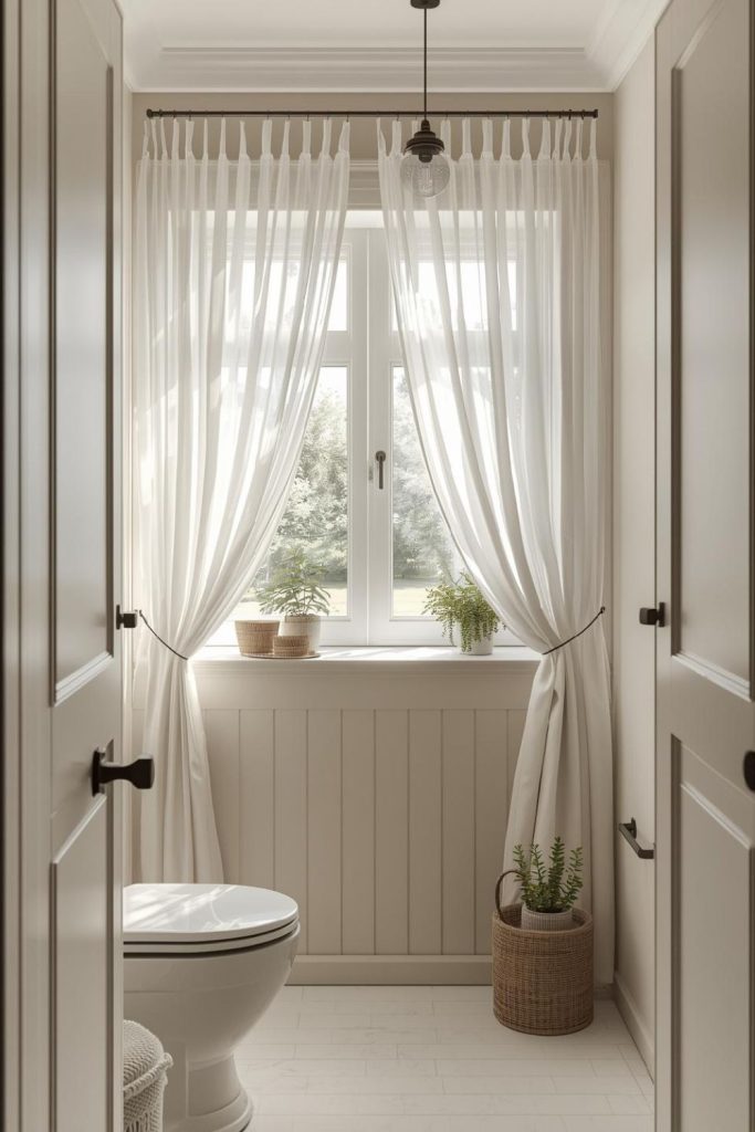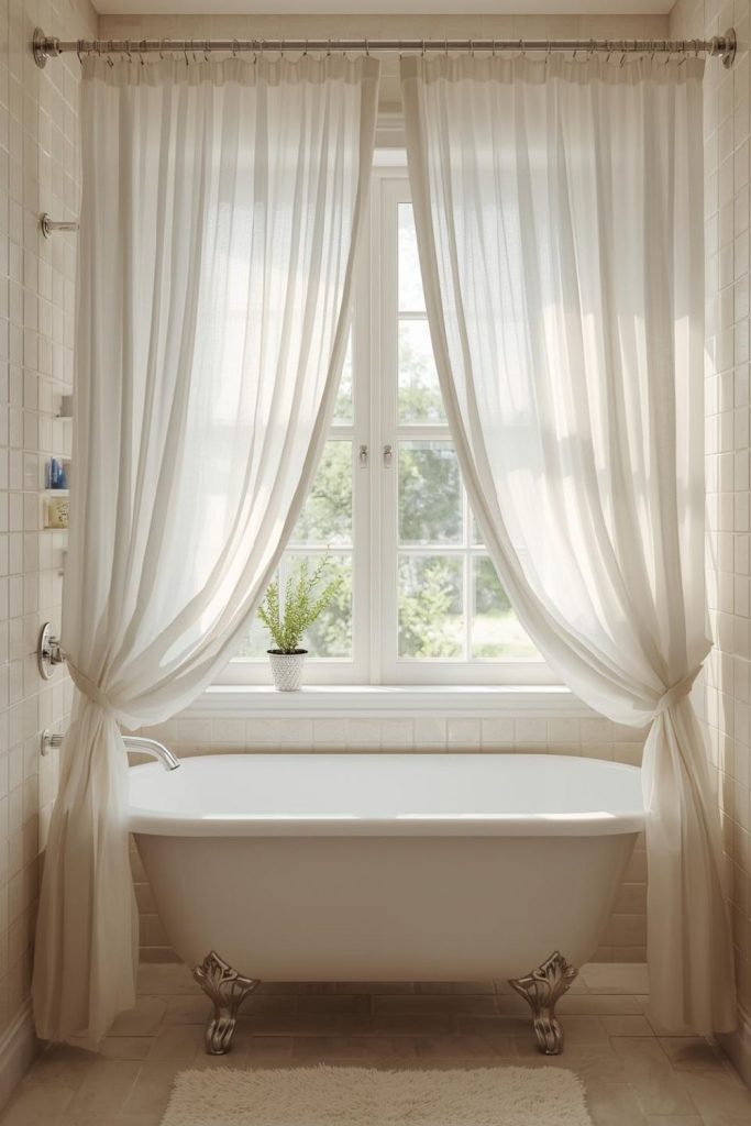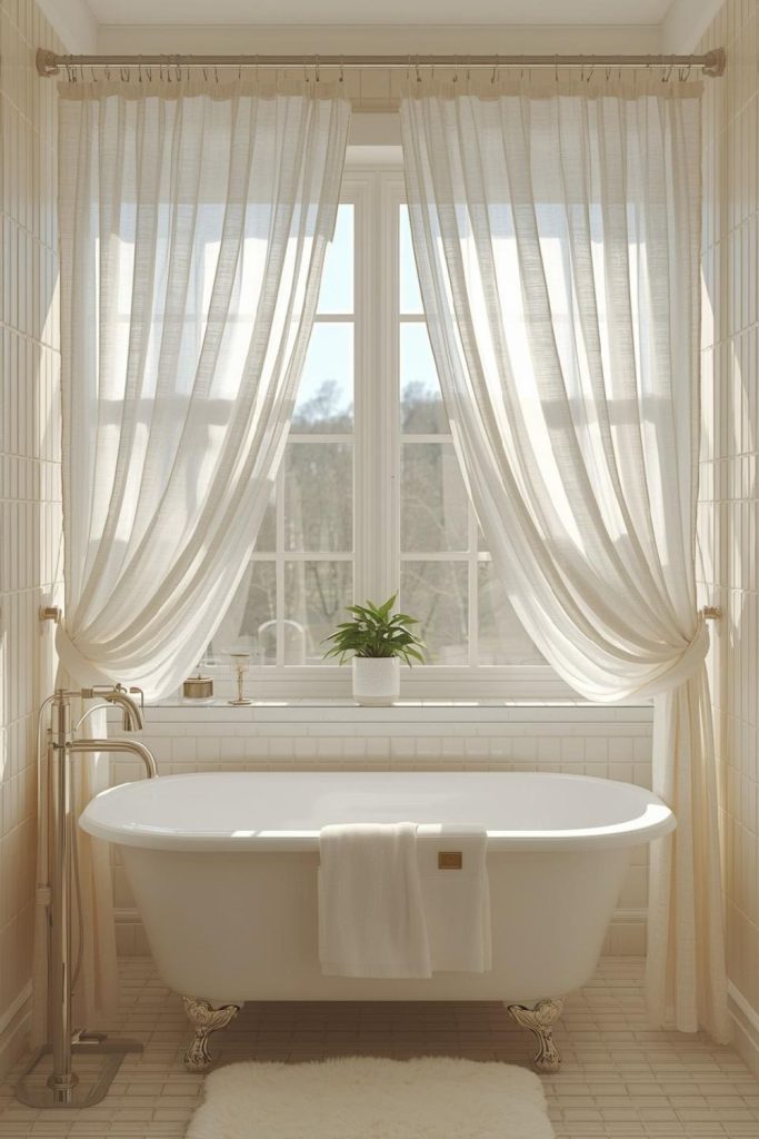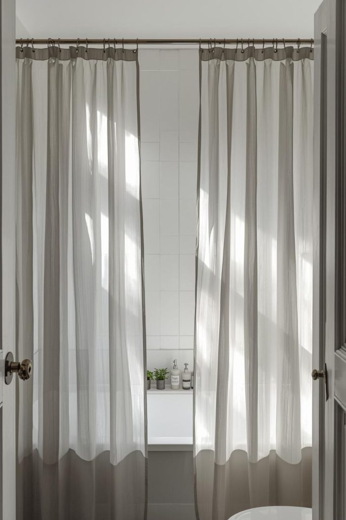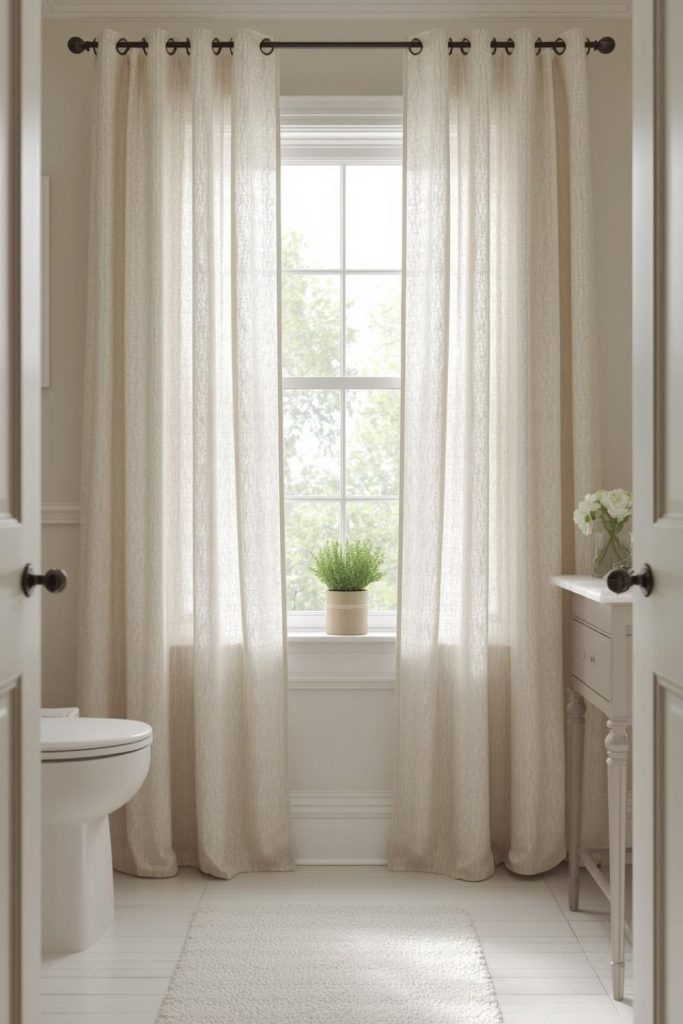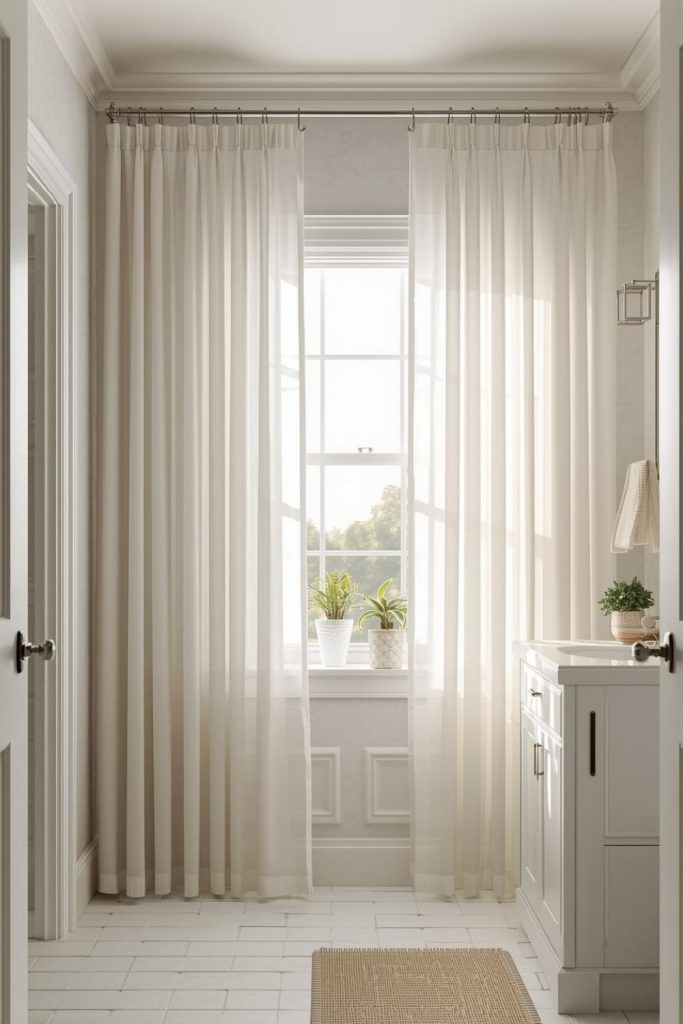 Soft White Curtains With Layered Sheer Panels for Small Bathrooms That Feel Airy and Bright