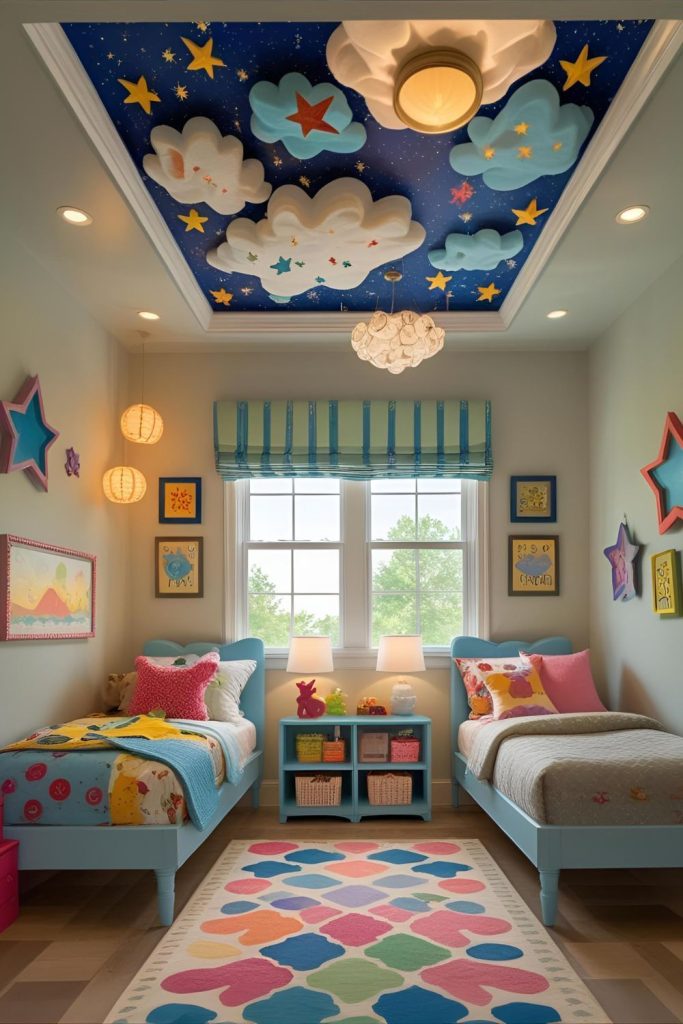 Artistic Ceiling Accents That Bring Charm to a Small Bedroom for Two Kids