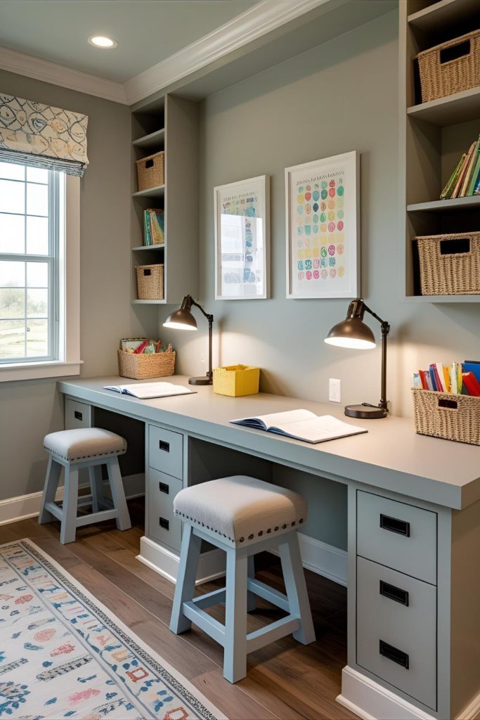 Built-In Desk Configurations for a Small Bedroom for Two Kids Who Study Together
