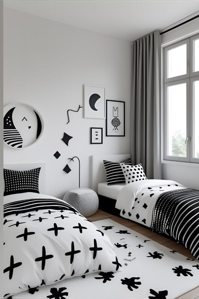 Monochrome Styling for a Sleek Small Bedroom for Two Kids