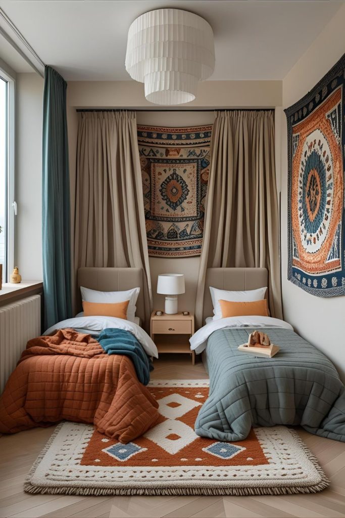 Textile Layering for Comfort and Style in a Small Bedroom for Two Kids