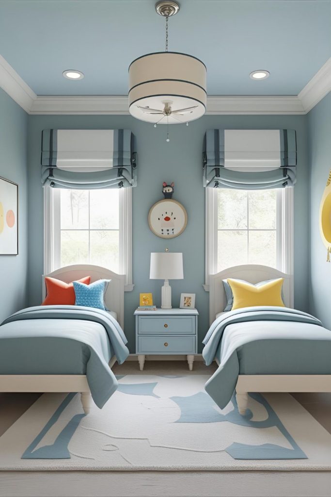 Shared doesn’t have to mean clashing. Pick a base color (like soft gray or pale blue) and let each kid choose an accent they love. One might go teal, the other mustard. It still feels put together without being matchy-matchy. Neutrals calm the room down and make tiny spaces feel lighter and brighter.