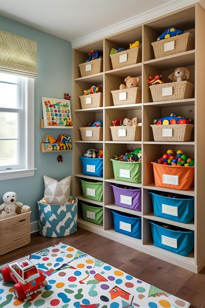 Ever notice how kids play more with less? Set up a simple toy rotation: one bin out, the rest stashed. Switch weekly. Fewer toys mean less mess, more focus, and easier cleanup. Bonus: everything feels “new” again without spending a dime. We store extras in a box under the bed.