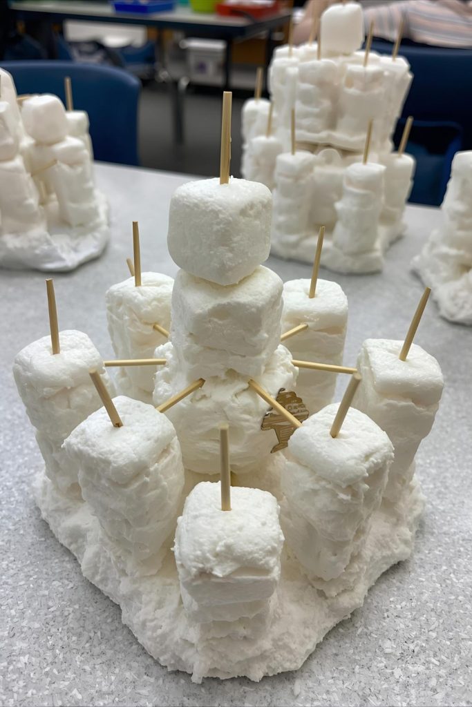 Students build miniature ice castles using marshmallows and toothpicks. This hands-on activity doubles as STEM learning, teaching construction, geometry, and problem-solving while providing a fun, edible decorative element.
