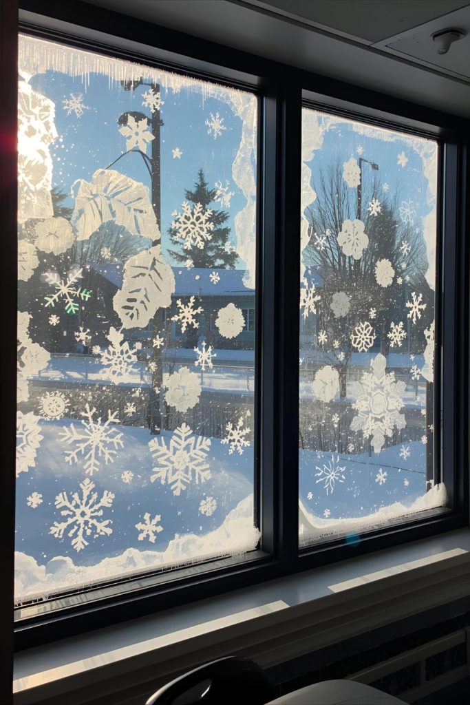 Frost-paint effects on windows bring a seasonal touch while letting students practice artistic skills. They can paint snow patterns or icy textures on glass with safe paint. This makes the classroom visually cozy and bright during winter days, encouraging creativity.